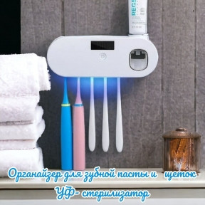 Держатель для зубной пасты и щеток, стерилизация УФ и дезинфекция Smart Sterilization / Органайзер для ванной